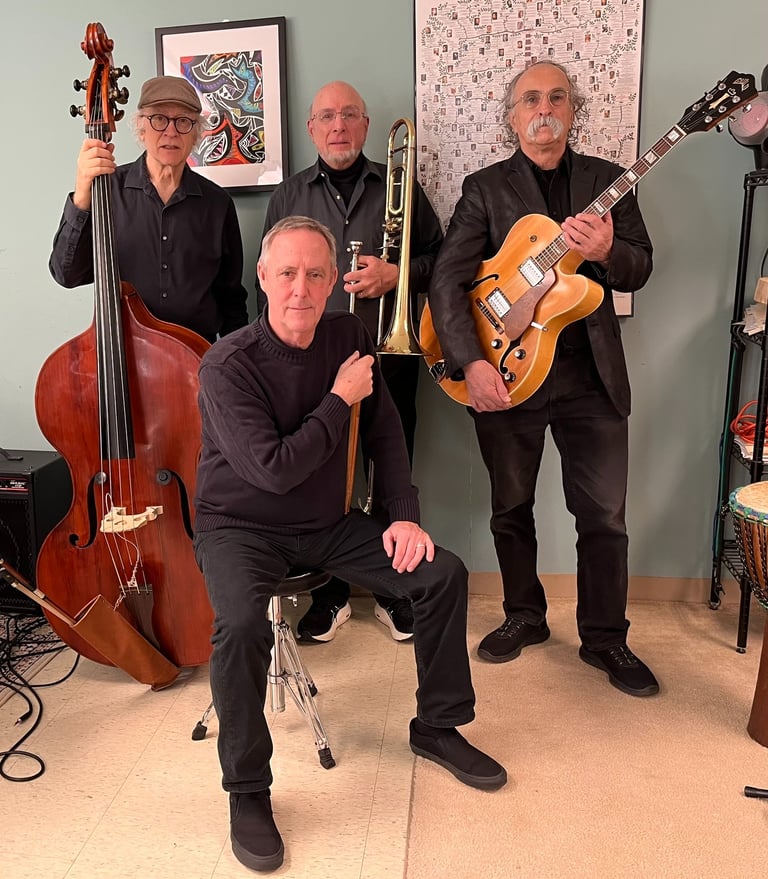 The jazz quartet's performance was mesmerizing, blending trombone, guitar, bass, and drums beautifully together.